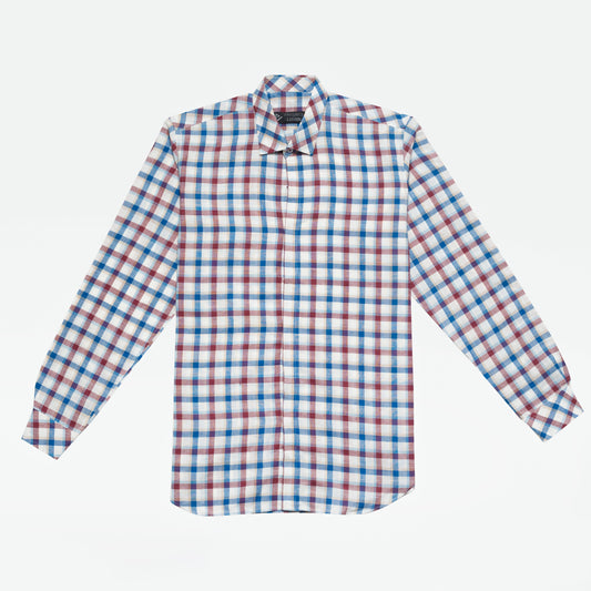 Blue & Red Checkered Button Down Linen Shirt - Her's
