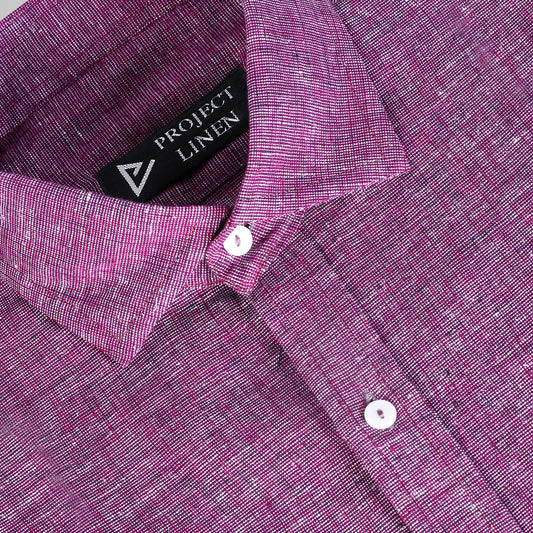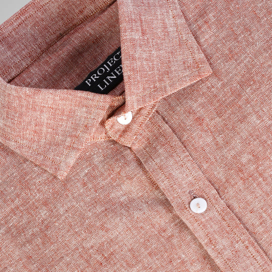 Turquoise Blue Band Collar Linen Shirt - Her's